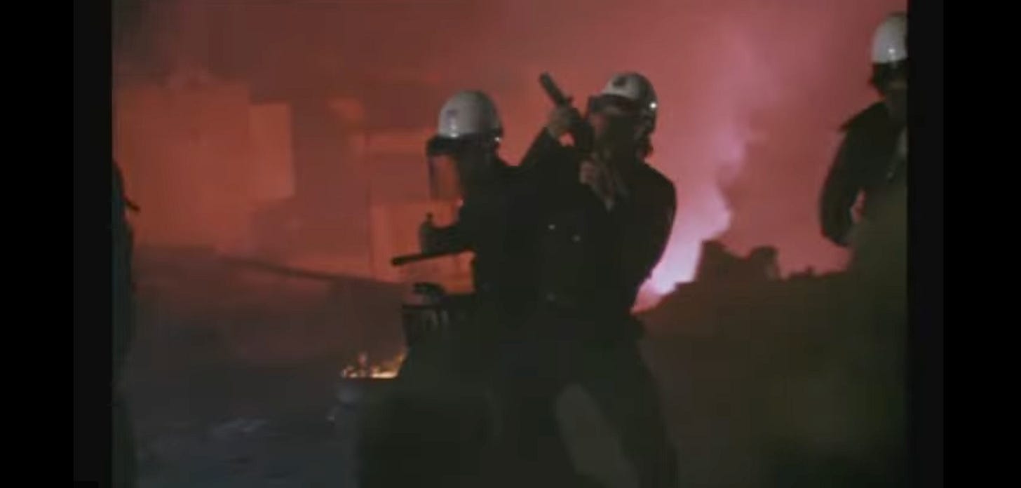 John Carpenter strikes again. Not only does They Live have one of the best fight scenes ever (Roddy Piper and Keith David are just insane), and also has one of the best lines ever, (“I have come here to chew bubble gum and kick ass, and I'm all out of bubble gum.”), it ALSO has beaucoup trash can fires in the homeless camp where Roddy hangs out. Which of course is violently raided, see below.