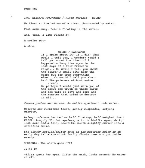 In The Shape of Water script, Guillermo del Toro keeps things exceptionally simple: