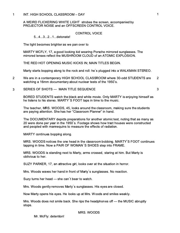 Check out this first page of an old draft of the Back to the Future script: